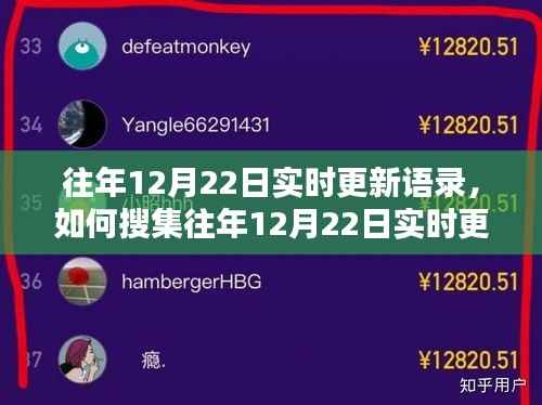 随着社交媒体的普及和网络信息的飞速发展,语录成为了人们表达情感、交流思想的重要载体,对于喜欢记录生活点滴的朋友们来说,搜集往年12月22日的实时更新语录,不仅是对过去时光的回顾,也是对特定时刻情感的珍藏,本指南旨在帮助初学者和进阶用户完成这一任务,学会如何搜集和整理语录。